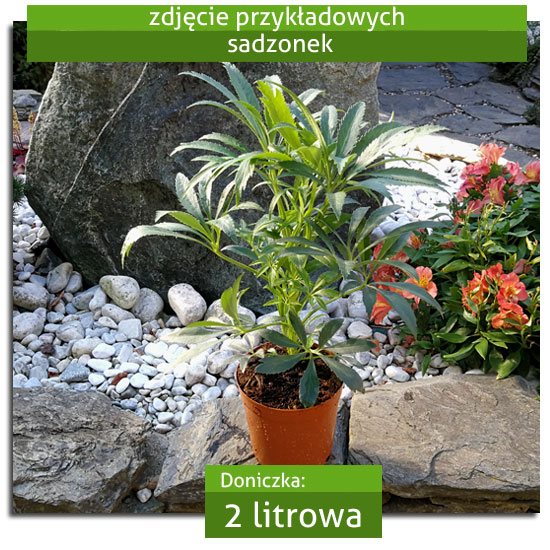Sadzonki ciemiernika palmowego (cuchnącego) oferujemy w pojemniku 1 litrowym.