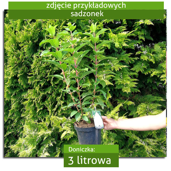 Sadzonki hortensji Mont Blanc oferujemy w pojemniku 3 litrowym.