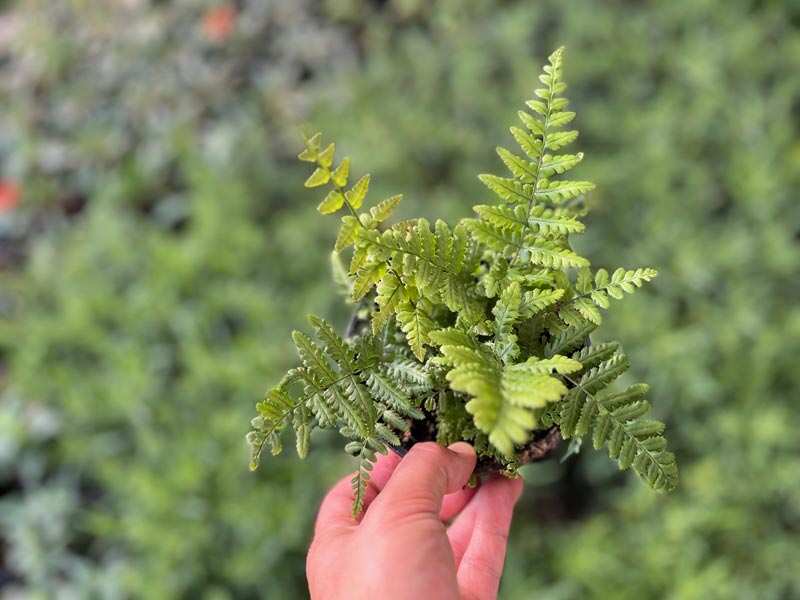 Narecznica Wallicha 'Jurassic Gold' to wyjątkowa paproć, która swoją zmieniającą się kolorystyką potrafi ożywić każdy zakątek ogrodu. Już od wczesnej wiosny zachwyca miłośników ogrodów swoimi intensywnie złoto-pomarańczowymi liśćmi, które niczym wachlarze rozwijają się w kształcie rozłożystych pióropuszy. Liście te, lancetowate i delikatnie pierzaste, tworzą eleganckie kępy, które z czasem zmieniają swoją barwę na bardziej złoto-żółtą, a następnie przechodzą w świeży odcień zieleni, utrzymując swój dekoracyjny wygląd aż do późnej jesieni. W łagodniejszych klimatach, w miejscach wolnych od mrozów, liście mogą utrzymywać się przez zimę, co czyni tę odmianę wyjątkową pod względem sezonowej atrakcyjności.