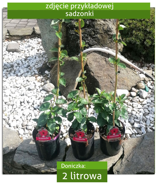 Sadzonki Sundaville oferujemy w pojemniku 2 litrowym. Na poniższym zdjęciu prezentujemy przykładowe oferowane egzemplarze.